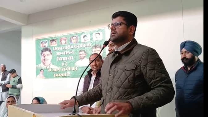 भिवानी। पूर्व उपमुख्यमंत्री दुष्यंत सिंह चौटाला ने कांग्रेस और भाजपा पर जमकर कटाक्ष किए। साथ ही चौटाला परिवार के एक होने के प्रयास पर हाथ जोड़ लिए। जेजेपी के स्थापना दिवस पर आयोजित रैली की सफलता के बाद भिवानी में कार्यकर्ताओं का आभार जताने पहुंचे दुष्यंत चौटाला ने मीडिया से बातचीत में विभिन्न मुद्दों पर अपनी राय रखी। उन्होंने कहा कि हरियाणा कांग्रेस भाजपा से मिली हुई है।