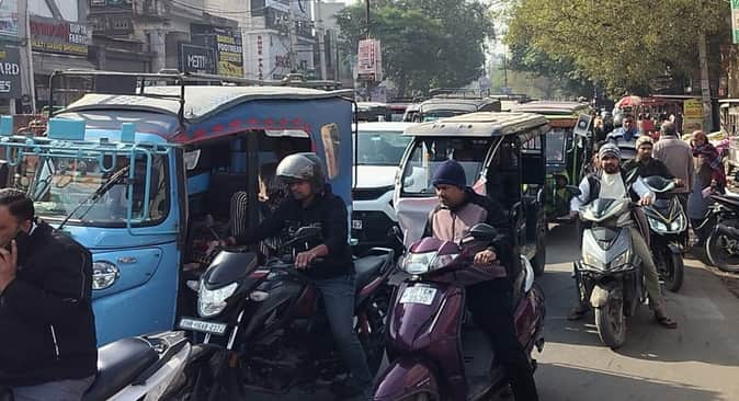 शहर के हांसी गेट पर जाम में फंसे वाहन।