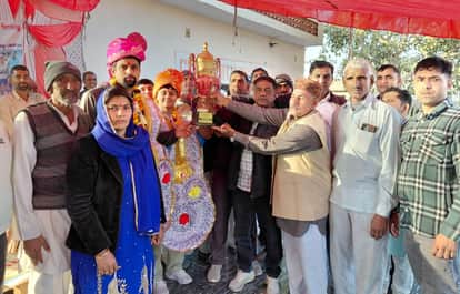 मुक्केबाज खुशी सहारण को सम्मानित करते ग्रामीण। स्वयं