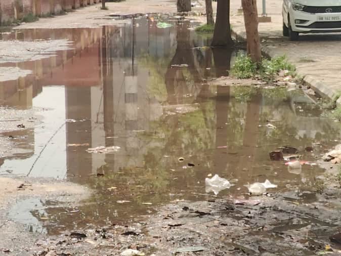 बारिश के बाद पीएमश्री राजकीय कन्या स्कूल के पास जमा पानी।