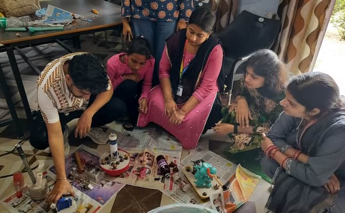 बीएड महाविद्यालय में आयोजित कला प्रदर्शनी में बेस्ट आउट ऑफ वेस्ट मैनेजमेंट की गतिविधियों में ह