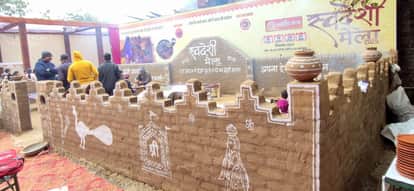 चार दिवसीय स्वदेशी मेले में बनाई गई हरियाणवी कच्ची ढाणी ।