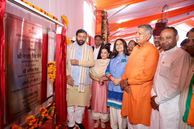 तोशाम में विकास परियोजनाओं का शिलान्यास करते मुख्यमंत्री नायब सिंह सैनी मौजूद राज्यसभा सदस्य कि