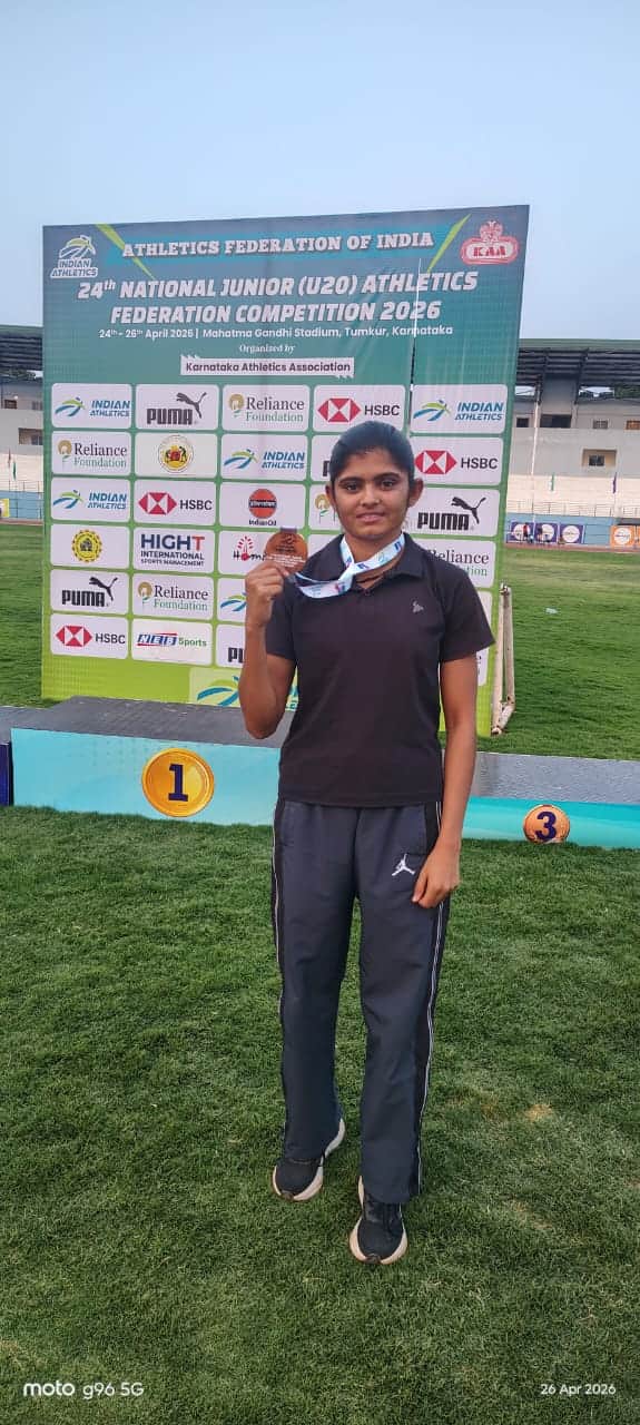 भिवानी। एथलेटिक्स फेडरेशन ऑफ इंडिया द्वारा आयोजित तीन दिवसीय जूनियर फेडरेशन स्पर्धा में भिवानी जिले के बवानीखेड़ा निवासी शशि ने ट्रिपल जंप इवेंट में कांस्य पदक हासिल किया है। यह प्रतियोगिता कर्नाटक के तुमकुर में जारी है।