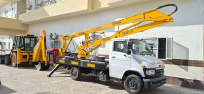 नगर परिषद कार्यालय में खड़ी ट्री ट्रिम कम स्काई लिफ्ट मशीन