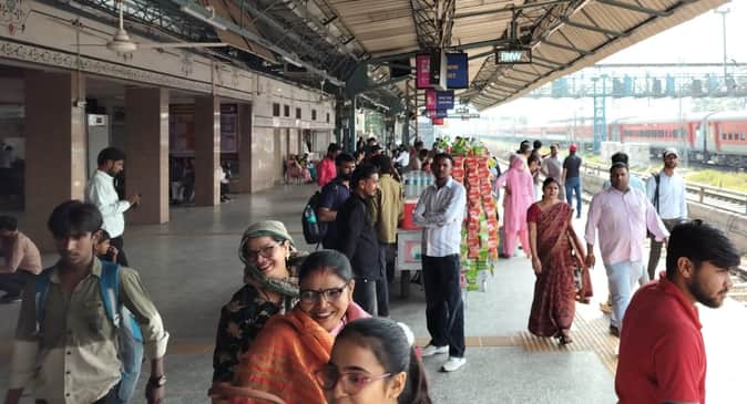 रेलवे स्टेशन पर ट्रेनों का इंतजार करते यात्री।