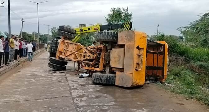 बवानीखेड़ा में पलटी हाइड्रा मशीन।
