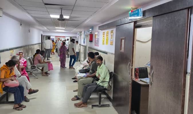 शहर के जिला नागरिक अस्पताल में स्थित एक्सरे कक्ष के बाहर बैठे मरीज