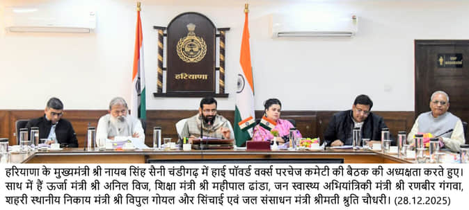 मुख्यमंत्री नायब सिंह सैनी चंडीगढ़ में हाई पॉवर्ड वर्क्स परचेज कमेटी की बैठक की अध्यक्षता करते
