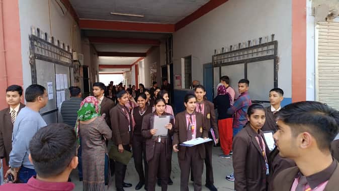 परीक्षा केंद्र से बाहर निकलते हुए विद्यार्थी।