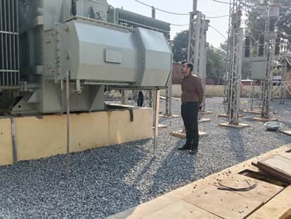 निर्माणाधीन पावर सब स्टेशन में लगे ट्रांसफार्मर की जांच करते हुए एसडीओ गौरव कुमार।