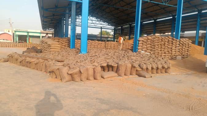 बाढड़ा कस्बे की अनाज मंडी में लगे गेहूं के बैग।