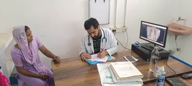 नागरिक अस्पताल में मरीज का उपचार करते डॉ. उपेंद्र श्योराण।