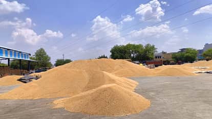 दादरी की नई अनाज मंडी में लगीं गेहूं की ढेरियां।