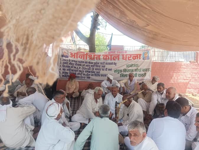 Charkhi Dadri News: बकाया मुआवजे की मांग के लिए किसानों ने सरकार के खिलाफ की नारेबाजी
