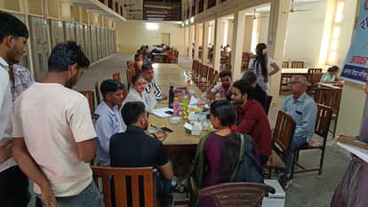 जनता कॉलेज में आयोजित शिविर में विद्यार्थियों के स्वास्थ्य की जांच करते चिकित्सक।