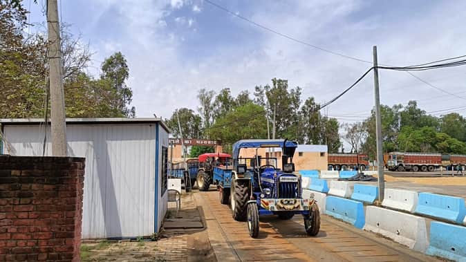 मंडी में गेटपास वेरिफिकेशन के लिए लगी ट्रैक्टरों की लाइन। संवाद