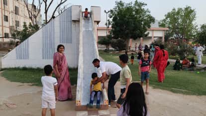 रोज गार्डन में खेलते हुए बच्चे।