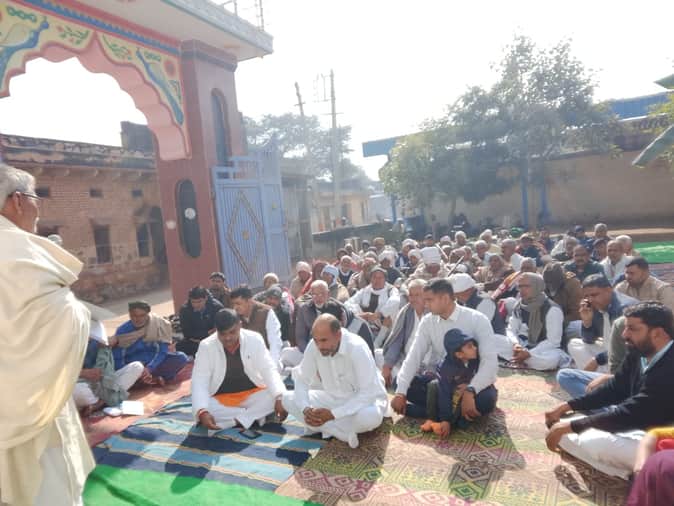 सभा को संबोधित करते हुए किसान नेता राजकुमार हड़ौदी।