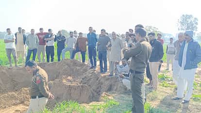मौके पर पहुंचे ग्रामीण व पुलिस।