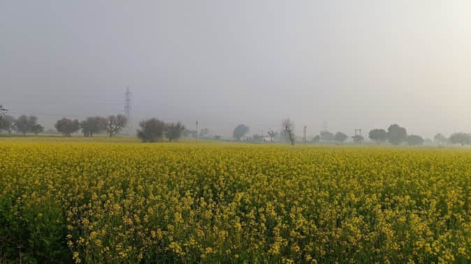 खेत में खड़ी सरसाें की फसल।