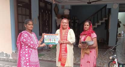घर घर जाकर महिलाओं को सम्मानित करती नप टीम।