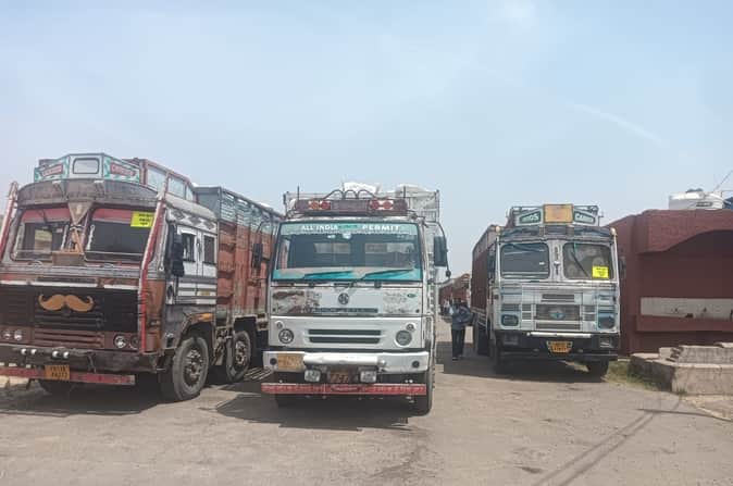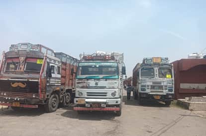 कुलां। गेट पास के इंतजार में खड़े ट्रक। संवाद