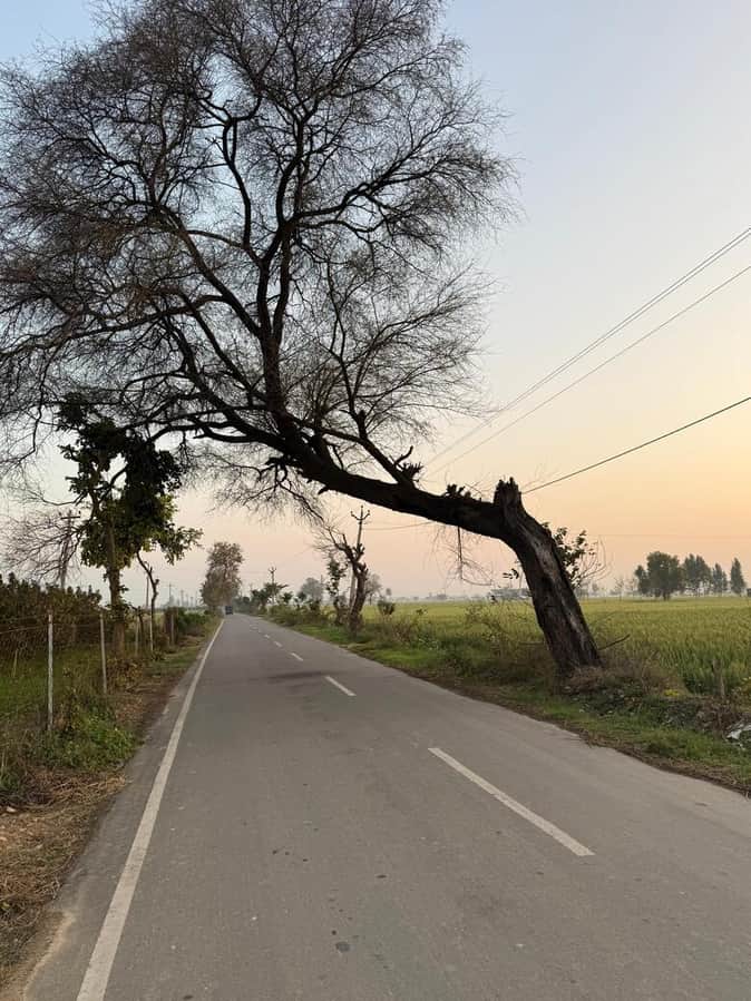 गांव गाजुवाला से उकलाना की तरफ जाने वाली सड़क पर टेढ़ा हुआ कीकर का पेड़। संवाद
