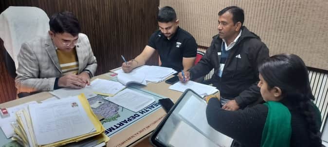 फतेहाबाद के सिविल सर्जन कार्यालय में दस्तावेज वेरिफिकेशन करते हुए अधिकारी स्त्रोत लाइब्रेरी
