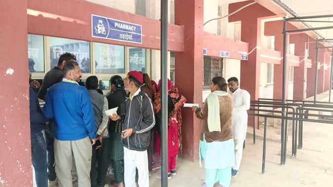 फतेहाबाद के नागरिक अस्पताल में दवाई लेना का इंतजार करते मरीज व उनके तीमारदार। संवाद