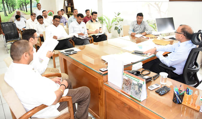 फतेहाबाद। जिले में फसल खरीद को लेकर अधिकारियों की बैठक लेते हुए डीसी डॉ. विवेक भारती। सूचना विभ
