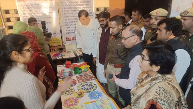 गांव खजूरी जाटी में शिक्षा विभाग की प्रदर्शनी का अवलोकन करते हुए अधिकारी