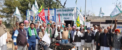 बाइक मार्च को लेकर एकत्रित किसान संगठन। संवाद
