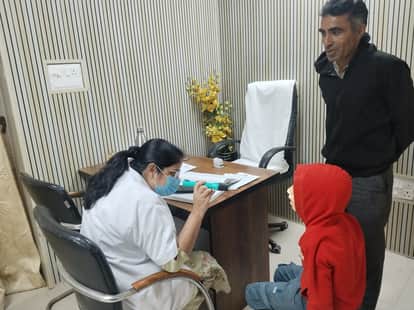 फतेहाबाद के नागरिक अस्पताल में दंत रोग विशेषज्ञ ओपीडी में बच्चे के दांतों का चेकअप करते हुए स