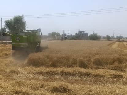 कन्हड़ी के खेत में कंबाइन से गेहूं की कटाई की गई।