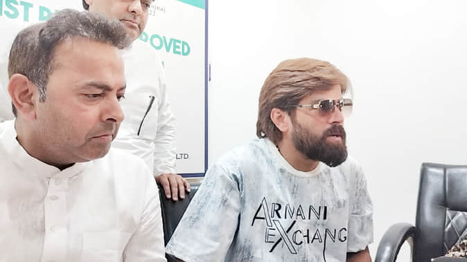 पत्रकारों से बातचीत करते हुए गायक कलाकार मासूम शर्मा। संवाद