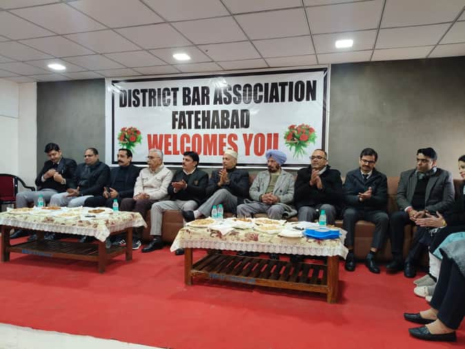 फतेहाबाद के जिला बार एसोसिएशन की तरफ से आयोजित कार्यक्रम में मौजूद न्यायधीश व अन्य