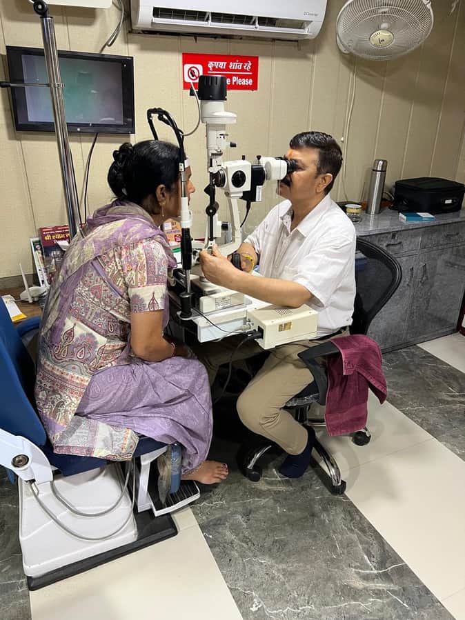फतेहाबाद में अस्पताल में मरीजों की आंखों की जांच करते हुए डॉ.विनोद शर्मा