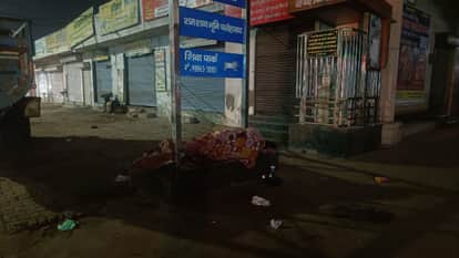 शहर के मुख्य मार्ग पर स्थित शिवपुरी के बाहर सोता हुआ एक व्यक्ति।