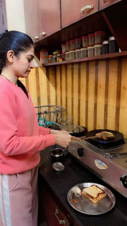 फतेहाबाद के घर पर खाना तैयार करते हुए कविता मेहता