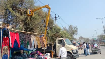 शहर के भट्टू रोड पर बिजली लाइन का जारी मरम्मत कार्य व टहनियों की की जा रही छंटाई। संवाद