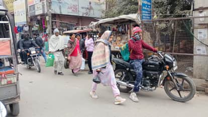 फतेहाबाद के थाना रोड से ठंड के दौरान गुजरते लोग। संवाद
