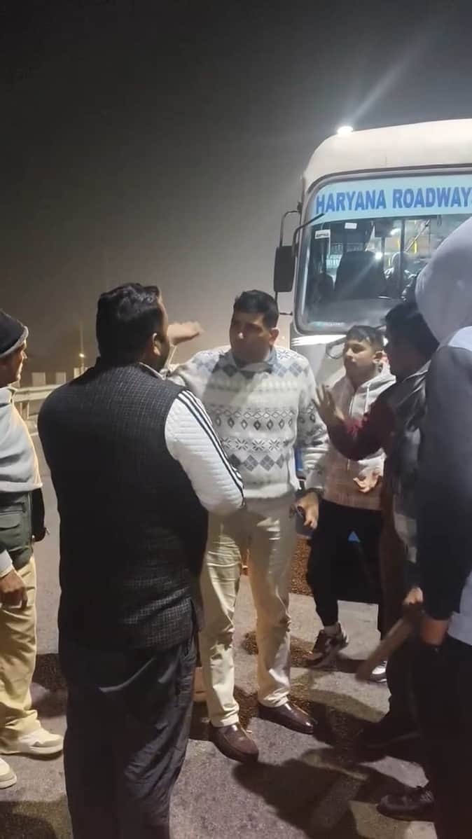 गांव बड़ोपल की सड़क पर रात के समय बस न रोकने को लेकर कर्मचारियों से बात करते हुए ग्रामीण। सोशल