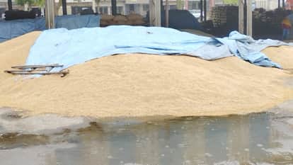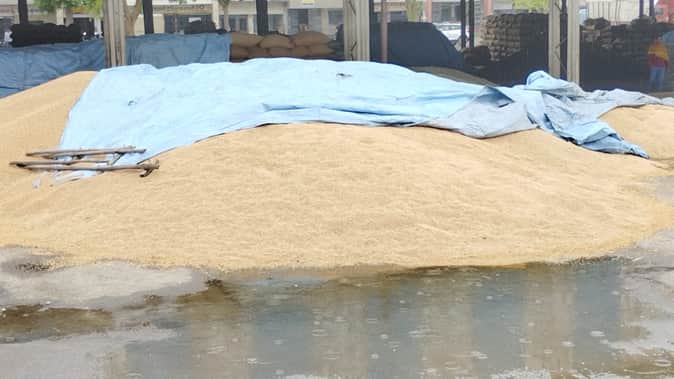 बूंदाबांदी के बाद अनाज मंडी में भिगती गेहूं की फसल।