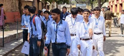 जाट स्कूल से परीक्षा देकर बाहर आते छात्र।