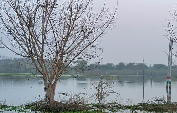 बवानीखेड़ा के खेल मैदान में जमा बारिश का पानी।