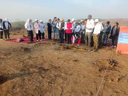 अग्रोहा। राष्ट्रीय राजमार्ग 9 के किनारे स्थित अग्रोहा के ऐतिहासिक टीले पर उत्खनन कार्य करीब सवा आठ महीने बाद रविवार को फिर शुरू हो गया है। भारतीय पुरातत्व सर्वेक्षण, ग्रेटर नोएडा के पंडित दीनदयाल उपाध्याय परिसर के पुरातत्व संस्थान के पीजीडीए छात्रों के 2026 बैच के उत्खनन शिविर का औपचारिक शुभारंभ रविवार को किया गया। इस अवसर पर संस्थान के निदेशक डॉ. भुवन विक्रम और चंडीगढ़ मंडल के अधीक्षण पुरातत्वविद कामेई अथोइलु कबुई ने कार्य की शुरुआत की।