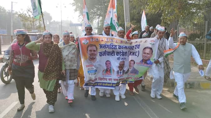 Hisar News: कामगार कर्मचारी कांग्रेस ने चार लेबर कोड्स के विराेध में निकाला मार्च