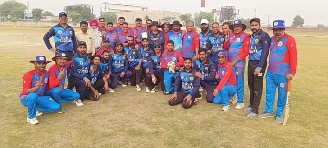 लुवास में चल रही क्रिकेट प्रतियोगिता में मैच के बाद पीएयू लुधियाना व एमडीयू की टीम।