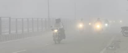 हिसार सुबह 8:00 दिल्ली रोड से धुंध के समय लाइट जलाकर गुजरते वाहन चालक। संवाद